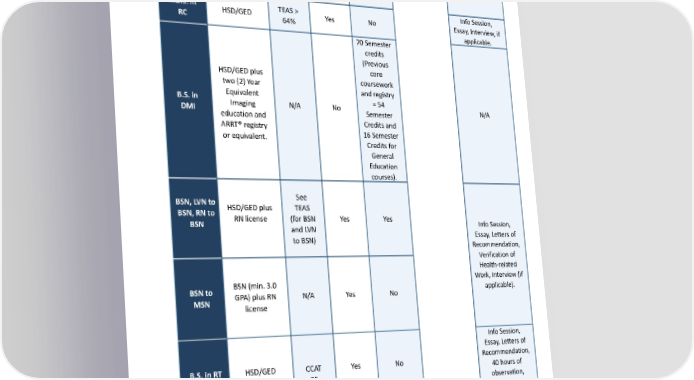 2.5 GPA) or completing 1,530VN programclock hours(BVNPT approved curriculum). Info Session, A.O.S. in TEAS> HSD/GED Yes No Essay, Interview, if RC 64% applicable. 70Semester credits (Previous core HSD/GEDplus coursework two(2)Year andregistry Equivalent B.S. in =54 Imaging N/A No N/A DMI Semester education and Credits and ARRT®registry 16Semester or equivalent. Credits for General Education courses). See BSN,LVNto HSD/GEDplus TEAS BSN,RNto RNlicense (for BSN Yes Yes BSN Info Session, andLVN Essay, Letters of to BSN) Recommendation, Verification of Health-related Work,Interview(if BSN(min.3.0 applicable). BSNto GPA)plusRN N/A Yes No MSN license Info Session, Essay, Letters of Recommendation, B.S. in RT HSD/GED CCAT Yes No 40hoursof 25 observation, Interview. DXA Info Session, CCAT HSD/GED Yes No Essay, Interview 18 XTMAS (if applicable). *Prerequisite courses may be taken at Gurnick Academy of Medical Arts. **SeeAdditionalAdmissionRequirementsperprogramforminimumagerequirements. 25